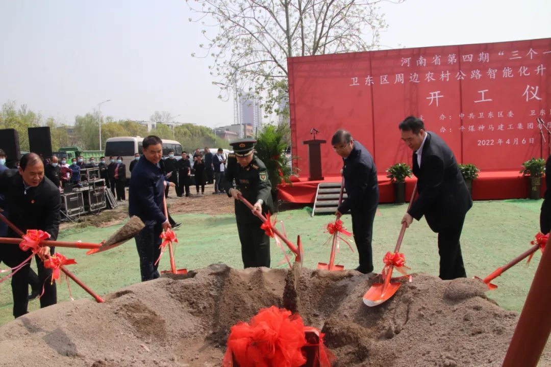 陽光明媚、春暖花開。2022年4月6日上午,河南省第四期“三個(gè)一批”活動(dòng)暨平頂山市衛(wèi)東區(qū)周邊農(nóng)村公路智能化升級(jí)改擴(kuò)建工程項(xiàng)目隆重舉行開工儀式。平頂山市委常委、軍分區(qū)司令員王翼,市人大常委會(huì)副主任荊建剛,衛(wèi)東區(qū)區(qū)委書記張偉同志,代區(qū)長宋建立,建工集團(tuán)總經(jīng)理劉興華,副總經(jīng)理劉升代表參建單位共同出席了此次開工典禮。